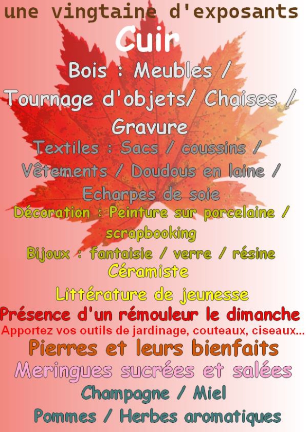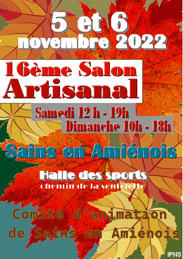 - dimanche 6 novembre, de 10h00 à 18h00 : Salon Artisanal de Sains-en-Amiénois, salle des sports, rue de la Sentelette